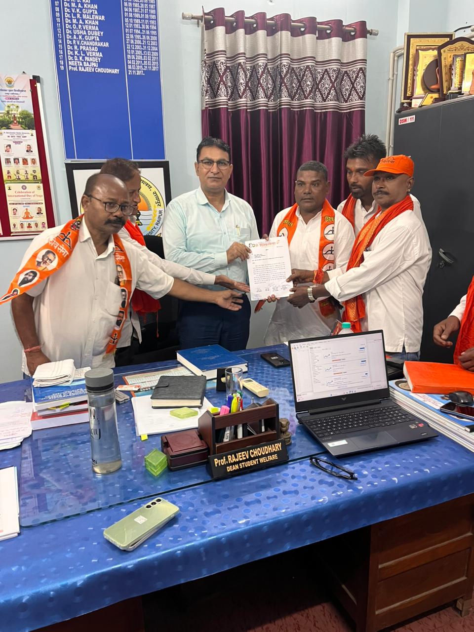 रायपुर। प्राइवेट स्टूडेंट की समस्या को लेकर शिवसेना ने रविशंकर विश्वविद्यालय प्रबंधन को ज्ञापन सौंपा गया। उन्होंने जल्द ही इस समस्या का निराकरण करने की माँग की है। प्राइवेट छात्रो के ऑनलाइन पोर्टल बंद करने के विरोध में। ऑनलाइन पोर्टल 6 अक्तूबर तक के खुला होना था। उसे दो दिन पहले बंद किए जाने से छात्र परेशान है। यूजी फ़स्ट सेमेस्टर प्राइवेट छात्रो के लिए ऑनलाइन पोर्टल 15,20 दिन के लिए खोले जाने की माँग की गई। विश्वविद्यालय प्रशासन द्वारा जल्द ऑनलाइन पोर्टल खोले जाने का आश्वासन दिया है। शिवसेना ने चेतावनी दी और कहा कि जल्द नहीं हुआ तो छात्रों के भविष्य के लिए शिवसेना आंदोलन करेगी। ज्ञापन सौपने वाले में संजय नाग,राधारमण पांडे,सूरज साहु,दिनेश ठाकुर, संजु साहू , अमर नायक,विजय नाग,प्रमोद साहू, हरीश यादव आदि शामिल थे।